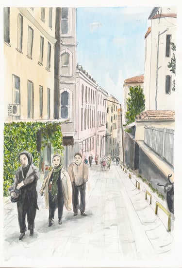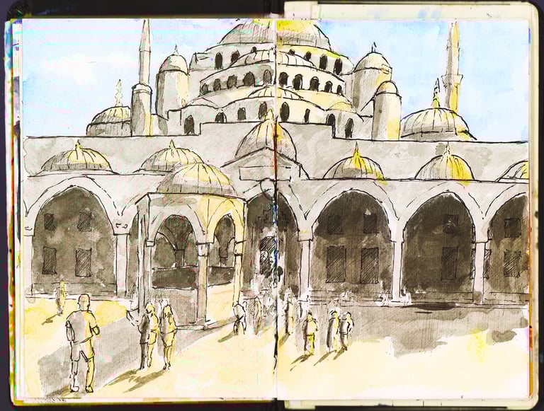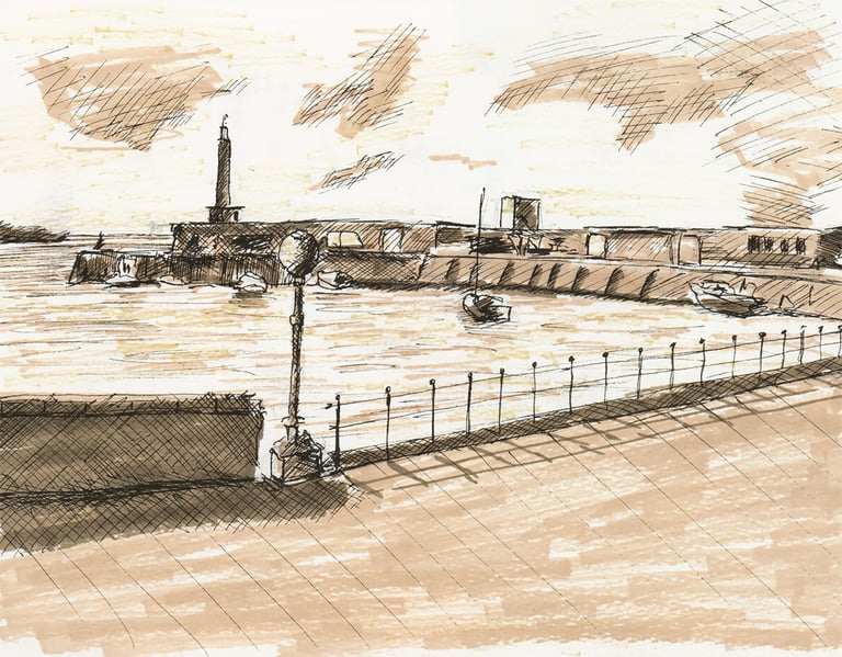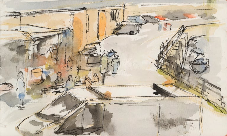 Sketches on location in watercolour, ink & gouache from Margate and travels