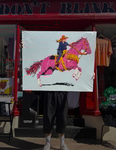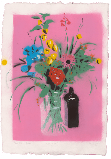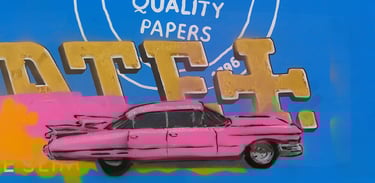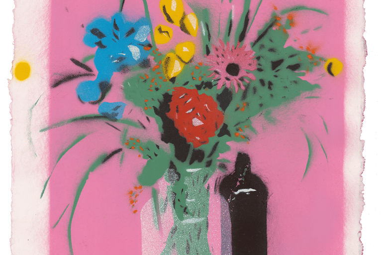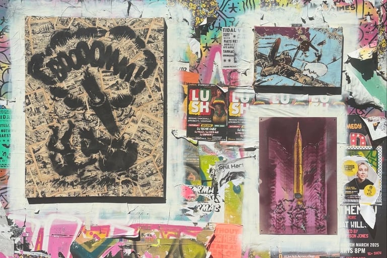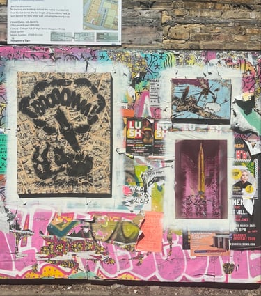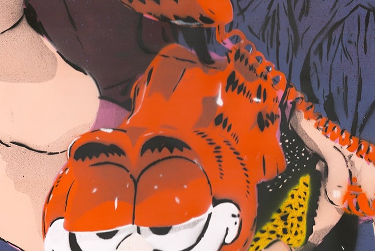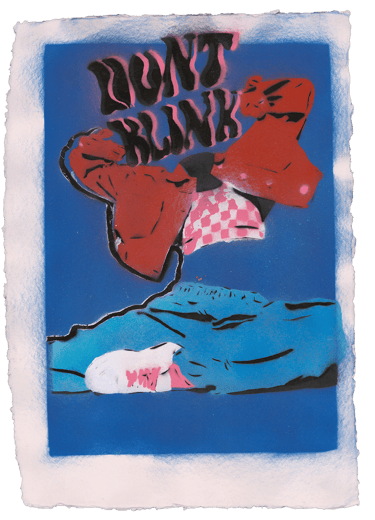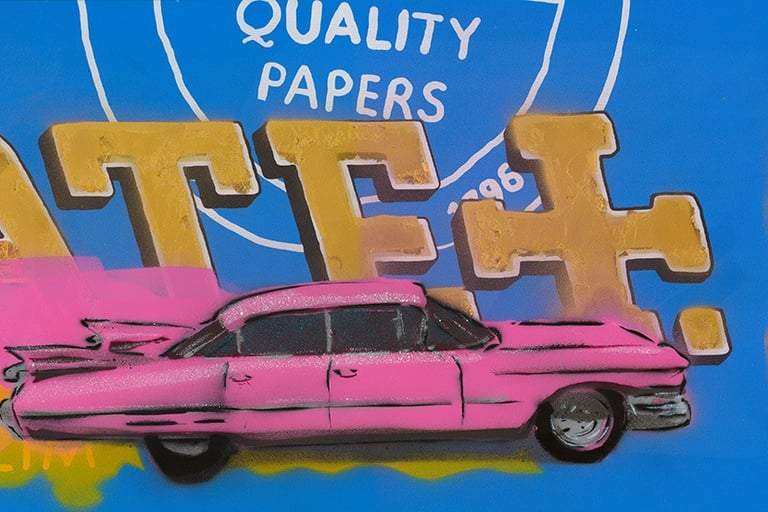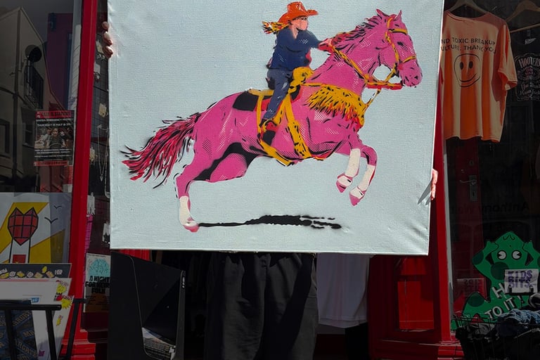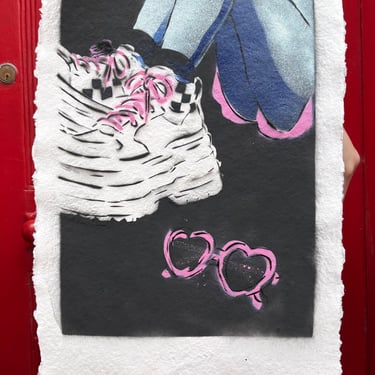 Works using handcut stencils and spray paint